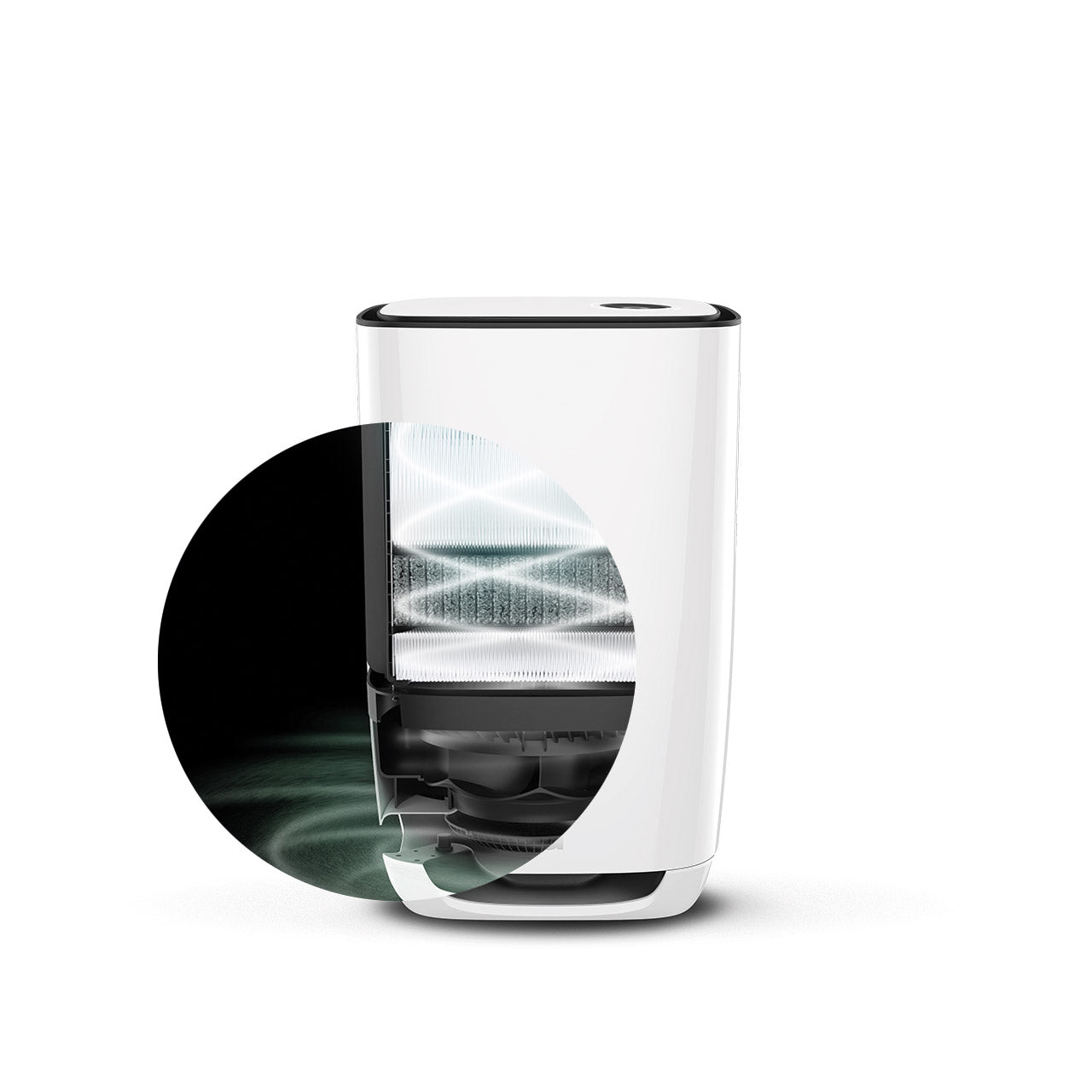 Der Name ist Programm: Die 3-in-1 Filterlösung bringt zusammen, was zusammen gehört. Ein cleverer Vorfilter für größere Partikel wie Staubflusen und Tierhaare. Danach läuft die Luft über einen Carbonfilter, der sie von Gerüchen, Gasen, Ozon und weiteren mikrofeinen Partikeln befreit und einem HEPA-Filter der neuesten Generation, der sich um Viren, Bakterien, Hausstaub und weitere Partikel erfolgreich kümmert.