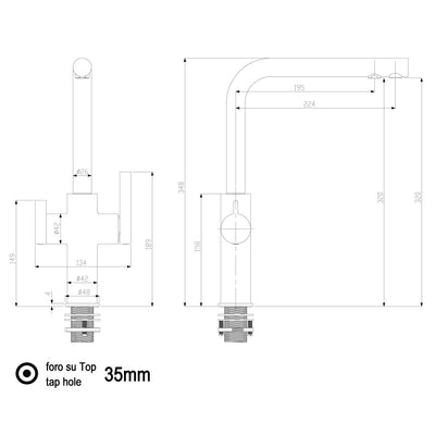 - Auslaufhöhe über Arbeitsplatte: ca. 320 mm