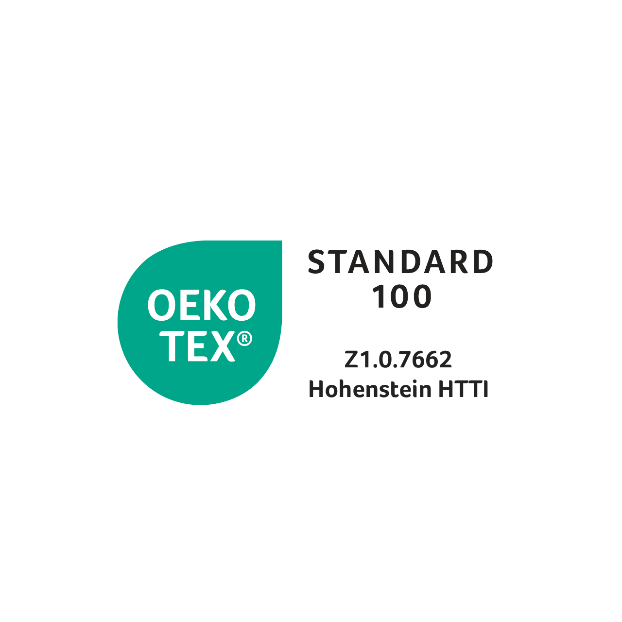 Öko-Tex Standard 100, auf Schadstoffe geprüft und gesundheitlich unbedenklich (Z1.0.7662 Hohenstein HTTI)