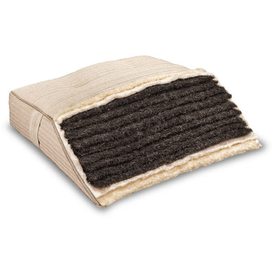 Die im Bezug versteppte Wollschicht ist temperaturausgleichend. Zusammen mit dem robusten Halbleinen-Drell-Bezug entsteht ein einzigartiges trockenes LiegegefĂŒhl. -