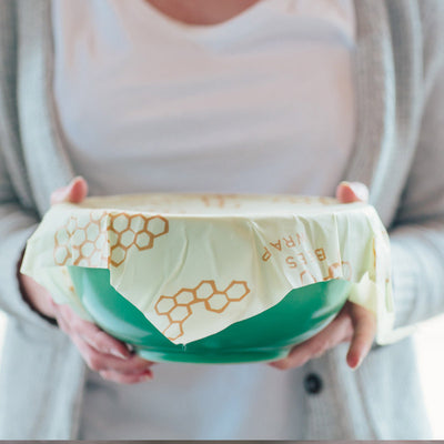Bee’s Wraps fühlen sich zunächst etwas steifer an. Du formst sie durch die Wärme deiner Hände und kannst sie so dem Lebensmittel deiner Wahl, der Schüssel oder der Auflaufform anpassen. Sie kühlen innerhalb von Sekunden ab und versiegeln Lebensmittel oder Behälter. Bienenwachs und Jojobaöl haben zudem antibakterielle Eigenschaften, die dazu beitragen, dass deine Lebensmittel frisch bleiben. Verwende den Bee’s Wrap aber nicht, um rohes Fleisch einzupacken.