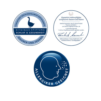 - Gänsedaunen und -federn: garantiert rückverfolgbar zertifizierte Daunen und Federn.