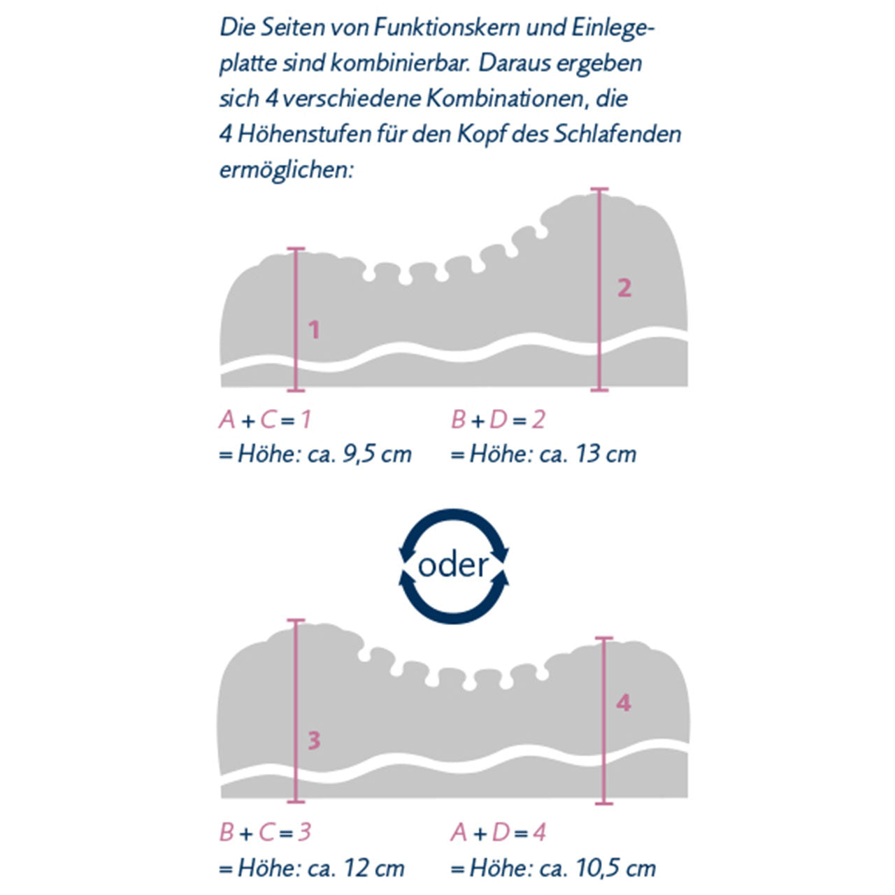 Komfort-Funktionskern aus besonders hochwertigem und langlebigen Kaltschaum mit verschieden hohen Wellen, herausnehmbare Platte