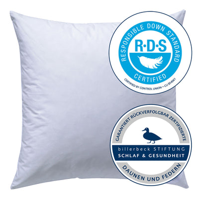 Die Füllung des SMARAGD Kissens besteht aus garantiert rückverfolgbaren und zertifizierten Entendaunen und -federn von Tieren, die nicht lebend gerupft wurden. Regelmäßige Qualitätskontrollen und ein starkes ökologisches Bewusstsein sind fest in der Unternehmensphilosophie von Billerbeck verankert. So kannst du sicher sein, dass du mit einem Billerbeck-Produkt nicht nur gut schläfst, sondern auch einen Beitrag zur Umwelt leistest.