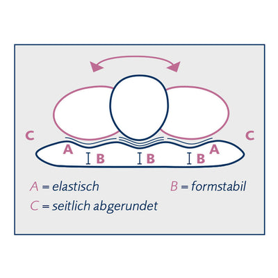 Die ergonomische Form des Kerns stützt deinen Nacken und hält die Position deines Kopfes stabil, auch bei Bewegungen im Schlaf. So kannst du Verspannungen vorbeugen und morgens erfrischt aufwachen.