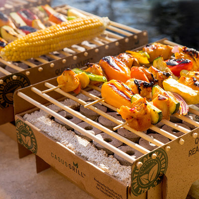 | Casus Grill: Umweltfreundlicher Einweggrill aus abbaubaren MaterialienDen warmen Sommerabend am See mit einem leckeren BBQ ausklingen lassen - ein Tag könnte kaum schöner zu Ende gehen. Einziges Problem: Die meisten Einweggrills bestehen aus wertvollen Materialien. Aluminium zum Beispiel. Um dieses zu gewinnen, muss zum einen Regenwald weichen, zum anderen werden bei der Herstellung giftige Substanzen freigesetzt. Bleibt ein solcher Grill in der Natur liegen, könntest du ihn auch nach 200 Jahren dort noch besuchen: Biologische Abbaubarkeit? Fehlanzeige. Und das alles für nur einen Tag? Muss nicht sein. Auf dein BBQ im Freien sollst du trotzdem nicht verzichten. Unsere Lösung: Der Casus Grill. Warum der Casus Einweggrill dein BBQ nachhaltiger machtObwohl es sich bei dem Casus Grill um einen Einweggrill handelt, hat er einen guten ökologischen Fußabdruck. Gefertigt wird er von oben bis unten aus Naturmaterialien: Bambuskohle, Lavastein, Bambusstäbe und FSC-zertifizierte Pappe. Aluminium oder Eisen kommen nicht zum Einsatz. Bis auf die Steine kannst du den kompletten Ökogrill anschließend sogar kompostieren - oder du verbrennst ihn einfach im Lagerfeuer. Hast du weder Komposthaufen noch Lagerfeuer zur Verfügung, lässt sich der Casus Grill über den Hausmüll entsorgen. Einfache Anwendung und hohe SicherheitDie Kohlebriketts lassen sich einfach entzünden. Schon nach fünf Minuten erreichen sie Grilltemperatur und halten diese eine Stunde lang gleichbleibend. Die Hitze verteilt sich gleichmäßig und stark, ohne dass Flammen sichtbar werden. Auf diese Weise sinkt das Brandrisiko. Durch eine gute Isolierung verbrennst du dich nicht, sobald du den nachhaltigen Einweggrill nach dem Grillerlebnis beiseite stellst - die Außenseiten erhitzen sich kaum. Bequem zu transportieren und zu entsorgenDie Maße von 31 x 23 x 5,5 Zentimeter bieten deinem Grillgut genug Platz. Gleichzeitig sind sie handlich genug, um den Öko-Einweggrill zu transportieren. Durch sein leichtes Gewicht von 1 Kilo findet er sogar im Trekkingrucksack Platz - damit du deine abenteuerliche Wanderung angemessen beenden kannst. Zwei Dinge solltest du jedoch nicht vergessen: 1. Ein Feuerzeug oder Streichhölzer. 2. Den Grill. Lass ihn nicht in der Natur - auch wenn er aus vielen abbaubaren Materialien besteht. Verbrenne oder entsorge ihn. Casus Grill: Nachhaltiger Einweggrill, der an alles denktEin Grill aus Pappe und Bambusstäben klingt für dich, als würden deine Gemüsespieße ins Feuer fallen und bald alles in Flammen stehen? Der nachhaltige Einweggrill ist extra so konzipiert, dass er einer hohen Hitze standhält. Du brauchst dich also wirklich nicht zu sorgen. Nutze den Casus Grill wie jeden anderen Einweggrill - nur eben ohne der Umwelt zu schaden. Das alleine wäre Grund genug für einen Preis. Gewonnen hat der Casus Grill diesen aber letztendlich für sein Aussehen: 2017 wurde ihm der Danish Design Award verliehen. Der nachhaltige Einweggrill im Überblick: