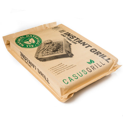 Obwohl es sich bei dem Casus Grill um einen Einweggrill handelt, hat er einen guten ökologischen Fußabdruck. Gefertigt wird er von oben bis unten aus Naturmaterialien: Bambuskohle, Lavastein, Bambusstäbe und FSC-zertifizierte Pappe. Aluminium oder Eisen kommen nicht zum Einsatz. Bis auf die Steine kannst du den kompletten Ökogrill anschließend sogar kompostieren - oder du verbrennst ihn einfach im Lagerfeuer. Hast du weder Komposthaufen noch Lagerfeuer zur Verfügung, lässt sich der Casus Grill über den Hausmüll entsorgen.