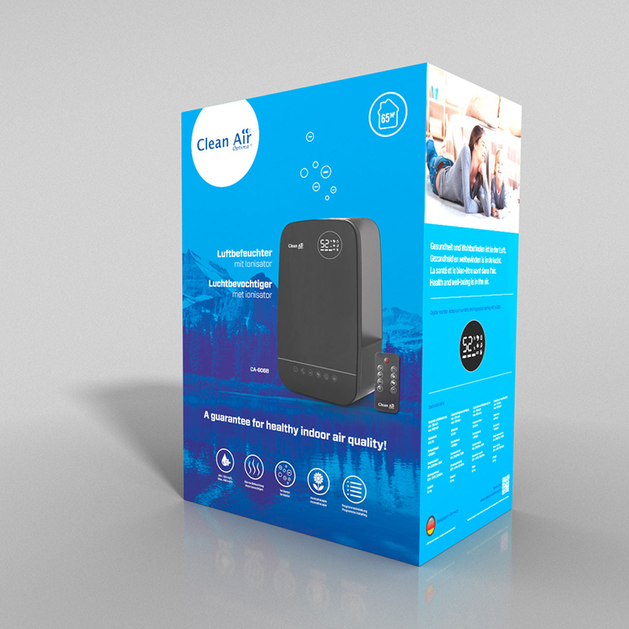 Eine gesunde Luftfeuchtigkeit innerhalb eines Raumes liegt bei ca. 40 bis 60%. Die gewünschte Luftfeuchtigkeit lässt sich mit dem Clean Air Optima CA-606 nach individuellem Empfinden zwischen 40 und 80% einstellen. Sollte der Wassertank irgendwann leer sein, schaltet sich das Gerät automatisch ab.