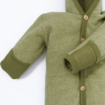 Cosilana Baby Overall mit Kapuze und Kratzschutz aus Bio Wolle / Bio Baumwolle