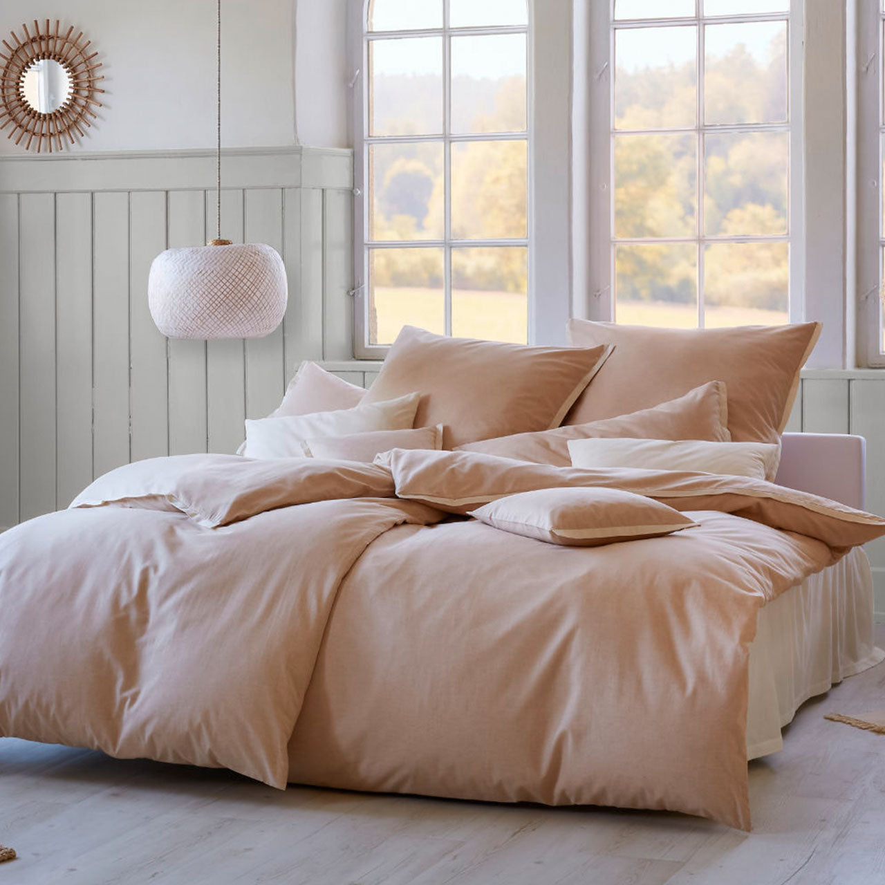 Cotonea Pur Bettwäsche Set aus Bio Baumwoll Chambray Braun / Natur