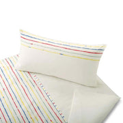Die farbenfrohe Satin Kinderbettwäsche mit den gelben, blauen, grünen und roten Streifen in sanften Farben, laden zum Träumen ein. Druck auf einen naturweißen Hintergrund, sorgen für einen dezenten Farbtupfer im Kinderzimmer. Die angenehm weiche Satin-Bettwäsche ist aus 100% Bio Baumwolle hergestellt. Die Garnitur ist besonders für empfindliche Kinderhaut geeignet, bei 60°C waschbar und sehr pflegeleicht. Ein gesunder Schlaf für Babys und Kinder.
