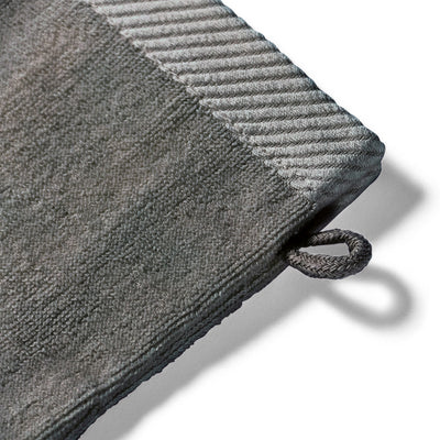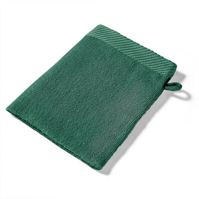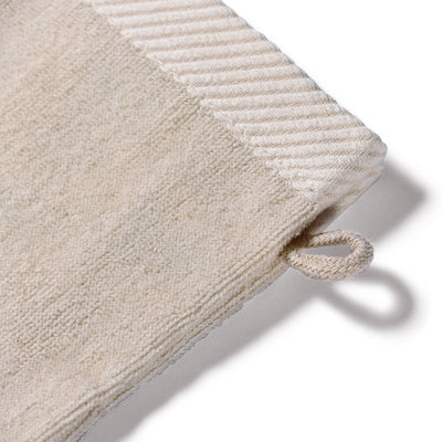 Der Waschhandschuh ist in verschiedenen tollen Farben erhältlich. Durch seine schlichte Optik mit eingewebter Bordüre passt er perfekt in jedes Badezimmer. Praktisch: der robust vernähte, seitliche  Aufhänger.