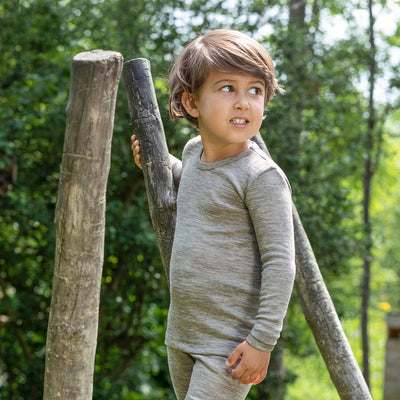Natur Kinderunterhemd langarm aus einem Schurwolle/Seidemix