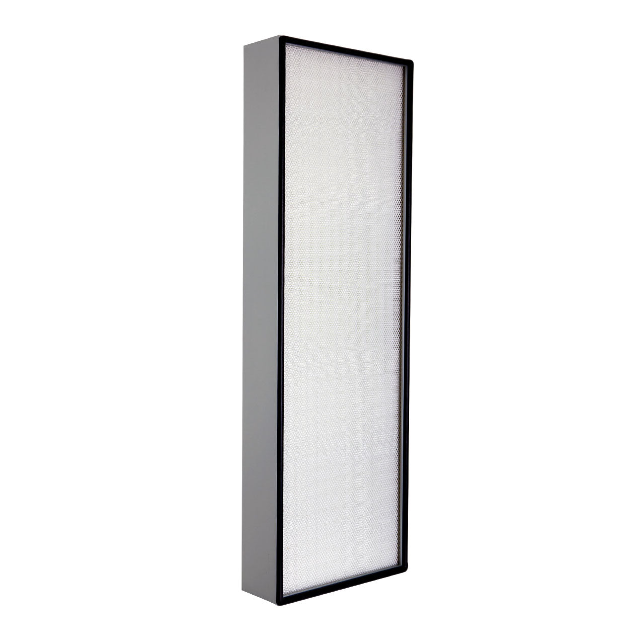 Der HEPA 14 Filter reinigt die Raumluft mit einer Effizienz von 99,995% von kleinsten Schwebstoffen (Teilchen und Partikeln, Feinstaub, Pollen, Schimmelsporen, Viren oder Bakterien). Der Filter wird nach ca. 24 Monaten ausgetauscht.
