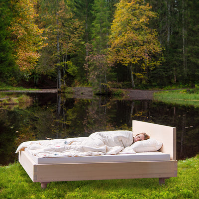 Die Hefel Bio Timber Bettdecke ist pflegeleicht maschinenwaschbar bis 40 °C. In der Luft trocknen.
