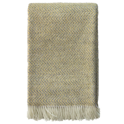 Schlichte, zeitlose und geschmackvolle skandinavische Decke aus 100 % Lammschurwolle im Fischgrät Muster mit langen Fransen. Nicht nur zum Wärmen hervorragend geeignet, sondern auch als dekoratives Wohnaccessoire für das Sofa.
