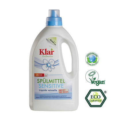 | Spülmittel Sensitive – ohne DuftGlänzend sauberes Geschirr und ein gutes Hautgefühl Tägliches Spülen kann bei hautsensiblen Menschen zu Hautreizungen führen. Deshalb bieten wir mit dem Spülmittel Sensitive eine Alternative zu konventionellen Produkten an, welche häufig reizende Inhaltsstoffe und Düfte enthalten. Das Handspülmittel von KLAR ist frei von Duftstoffen und sanft zur Haut. | Regulärer Preis