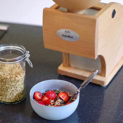 FlocMan hält dir den Rücken frei, wenn du gerne Experimente beim Backen und Kochen machst. Er verarbeitet Weizen, Dinkel und Roggen genauso geduldig und zuverlässig wie Leinsamen, Sesam oder Chiasamen. Auch vor Gewürzen macht er nicht halt und hilft dir dabei, deine Lieblingsgerichte zu verfeinern.