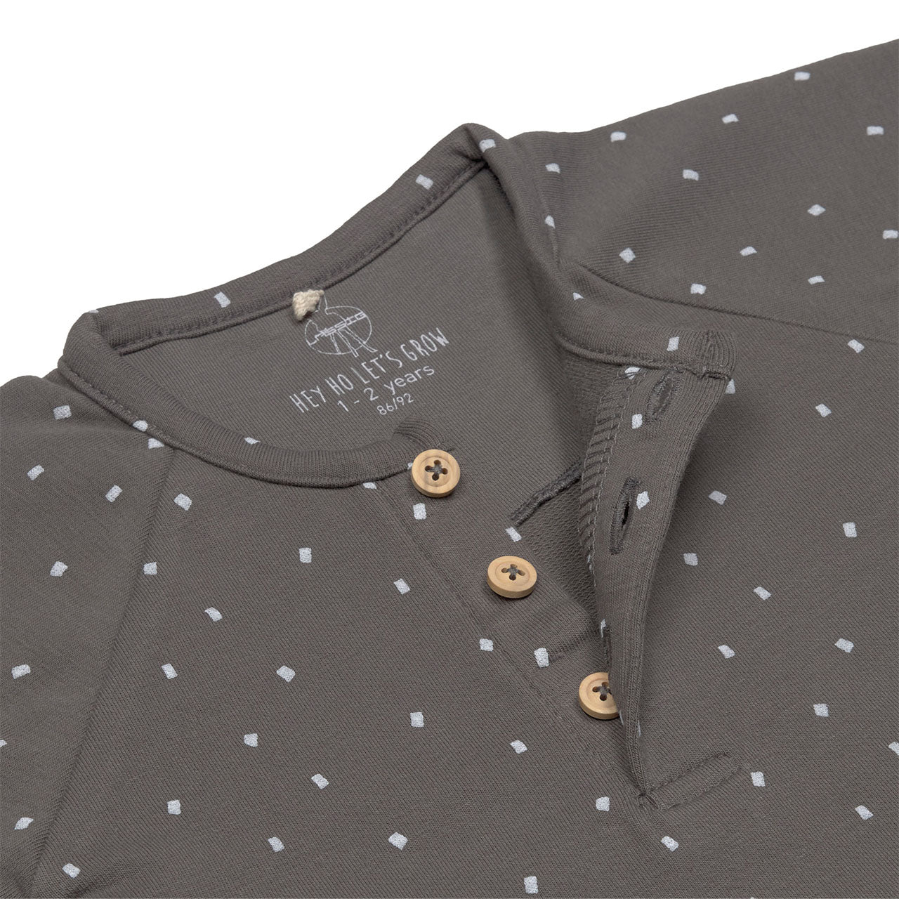 Mit Knopfleiste am Hals sowie durchgÀngige Druckknopfleiste im Schritt