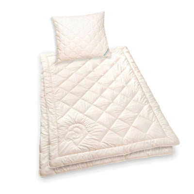 ÖKO Planet Set: 4-Jahreszeiten-Bettdecke und Kissen mit Schafwolle-Füllung