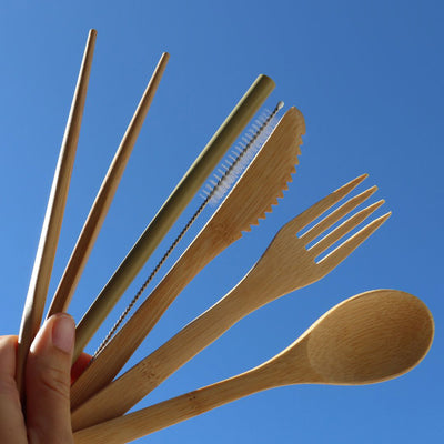 - Set mit: 1 Bambus Messer, 1 Bambus Gabel, 1 Bambus Löffel, 1 Paar