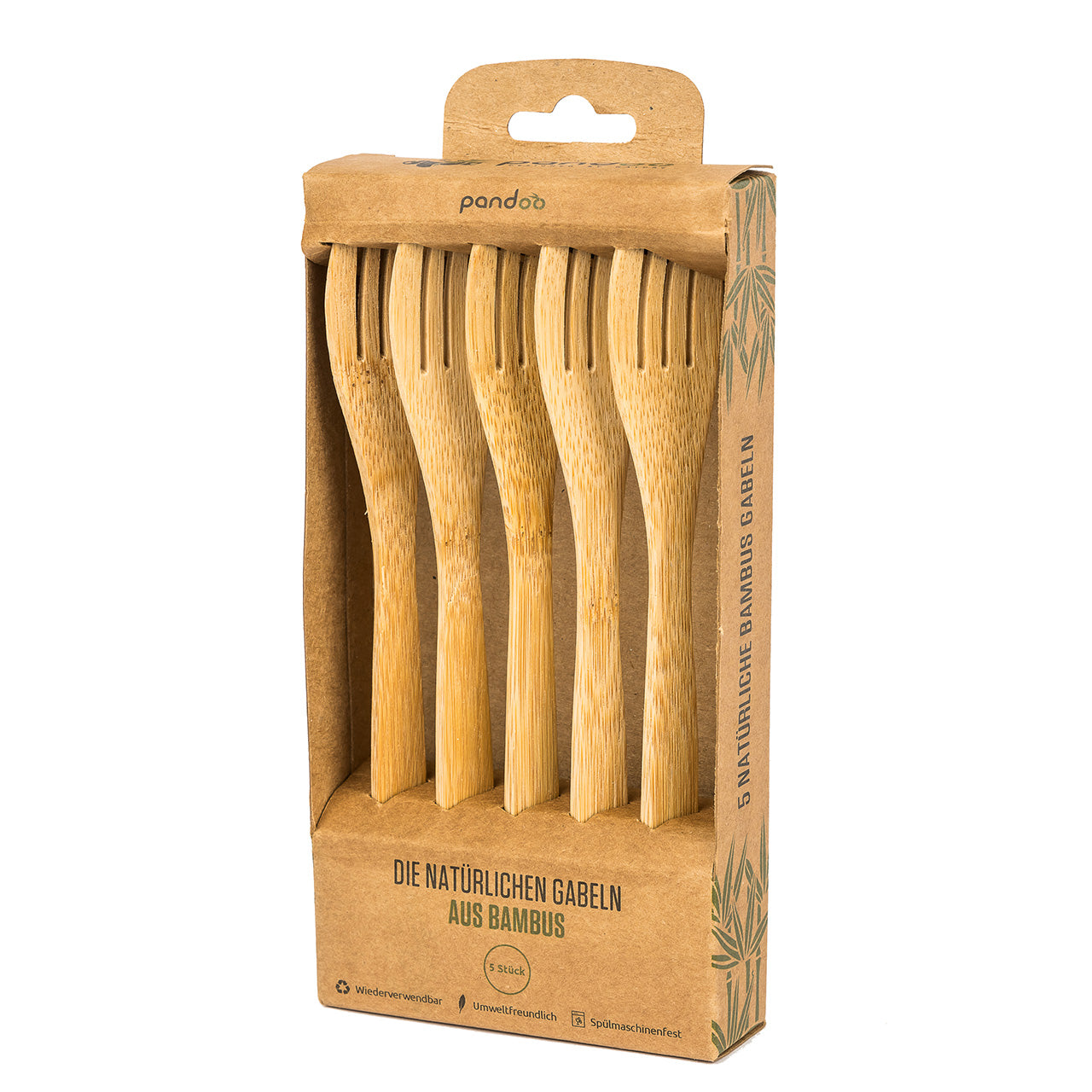 Pandoo Mehrweg Besteck aus Bambus, 5 Stück