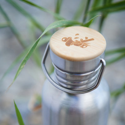Die robuste Flasche begleitet Dich durch Deinen Alltag, ohne dass Du schwer zu tragen hast. Sie ist mit einem edlen Deckel aus Edelstahl und Bambus ausgestattet. Ein echter Hingucker - und echt praktisch! Der Deckel schließt sicher und der Henkel ermöglicht leichtes Tragen oder Befestigen der Flasche.
