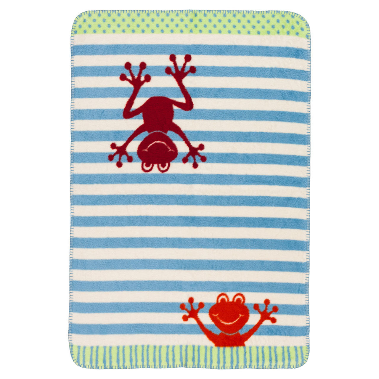Niedliches Froschdesign - zum Spielen und Kuscheln: Die flauschig, weiche Babydecke eignet sich hervorragend für Unterwegs, zum Wärmen oder zum Spielen. Das Liebevolle Tierdesign passt perfekt in jedes Kinderzimmer. Eine farblich abgestimmte Häkelkante fasst die Wohndecke ein und macht sie besonders robust.