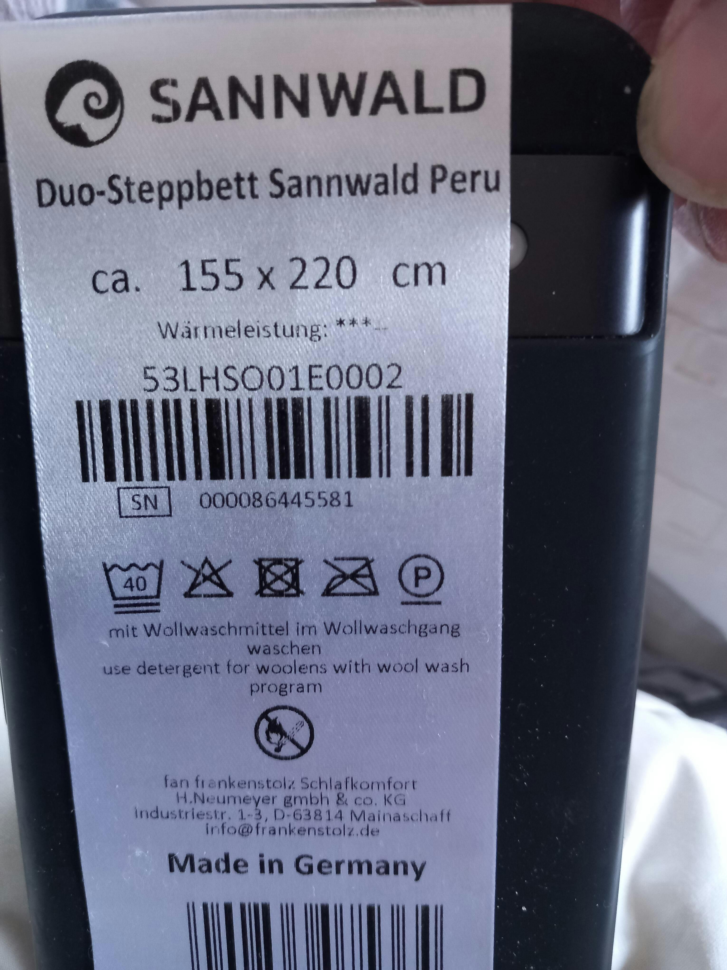 Das Ganzjahres-âSteppbettâ der Sannwald Peru hat eine angegebene WĂ€rmeleistung von 2.