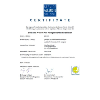 Allergendichte unabhängig geprüft von TÜV oder Hohenstein