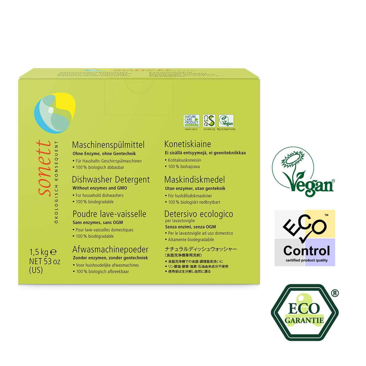 Unser Maschinenspülmittel-Pulver bieten gute Reinigungskraft, sauberes, streifenfreies Geschirr. Frei von Tensiden, Enzymen und aggressiven Bleichmitteln. Alle Inhaltsstoffe sind auf pflanzlicher, mineralischer Basis und aus nachwachsenden Rohstoffen hergestellt.
