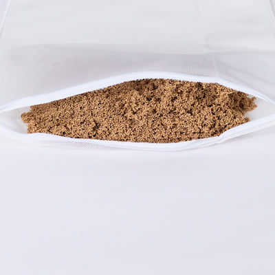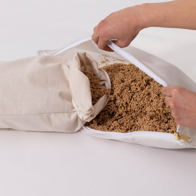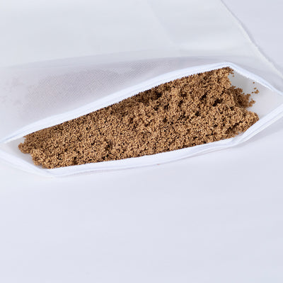 Mit dem Speltex® Spezial-Wäschenetz kannst Du Deine Füllungen problemlos waschen und trocknen, ohne dass die Körner beschädigt werden. Das Netz sorgt dafür, dass keine Schalen entweichen und dass die Feuchtigkeit optimal aufgenommen wird, was das Schlafklima angenehm stabil hält. Achte darauf, das Netz nicht zu überladen und die Füllung vor dem Waschen zu wiegen, um eine vollständige Trocknung sicherzustellen. Perfekt für den Wäschetrockner oder um in die Sonne zu legen.