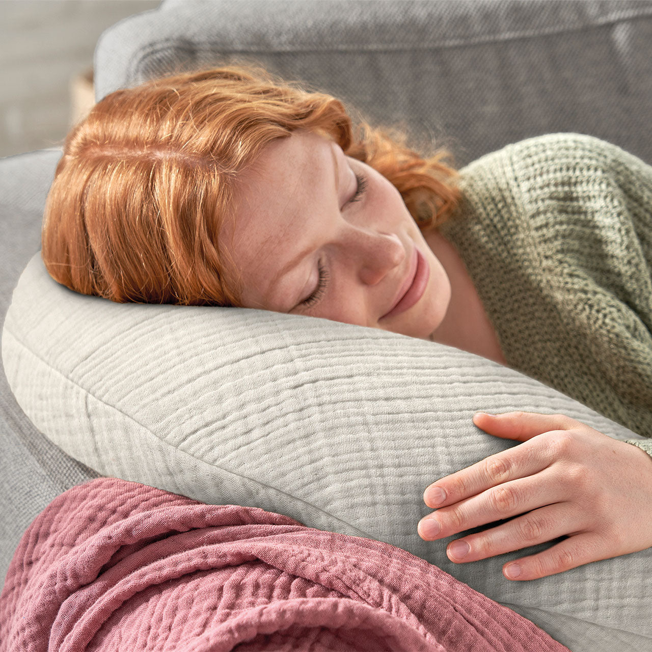 Kompakt - ideal für unterwegs oder auf dem SofaAnpassungsfähig - formbare EPS-Füllung für FlexibilitätLeicht - angenehmes Handling im AlltagWeich - sanfter Bezug aus Bio-BaumwolleHygienisch - Bezug einfach waschbar