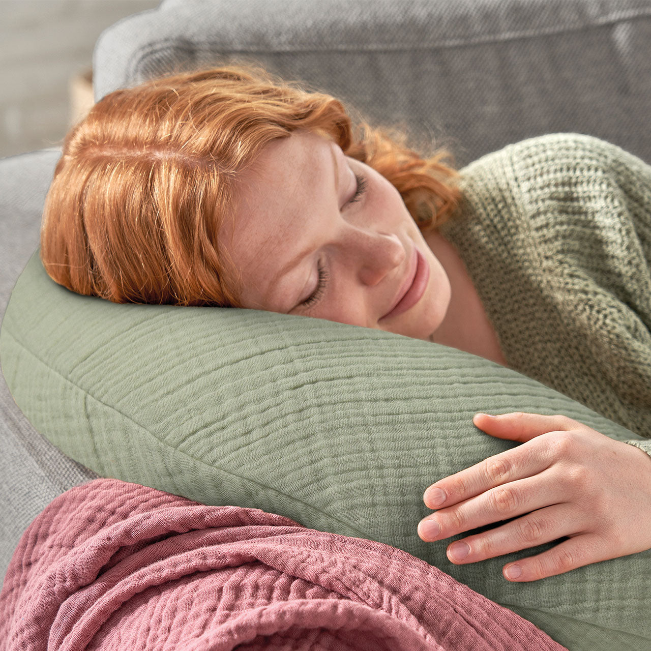 Der Außenbezug aus Musselin besteht aus vorgeschrumpfter Bio-Baumwolle. Das Gewebe ist weich, atmungsaktiv und besonders angenehm zur Haut. So genießt du jederzeit ein komfortables Gefühl, auch bei intensiver Nutzung.