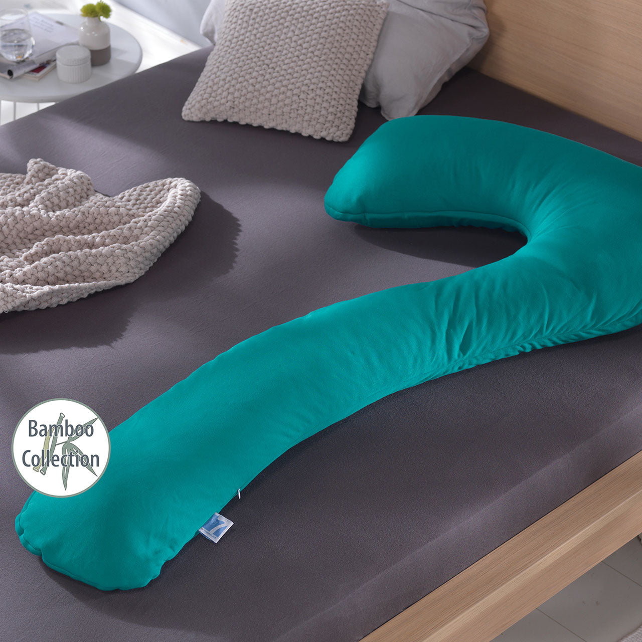 Der zusätzliche Nutzen ist das natürliche Material des Bezuges. Es besteht aus einer Mischung aus Bambus und Bio Baumwolle, ergänzt durch Elasthan. Der Stoff ist fein im Griff und bietet leichten Glanz