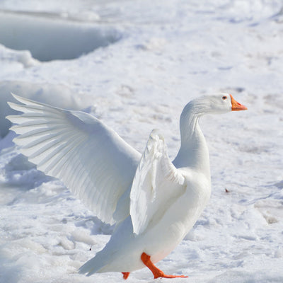 Hochwertige Daunen von freilaufenden Gänsen