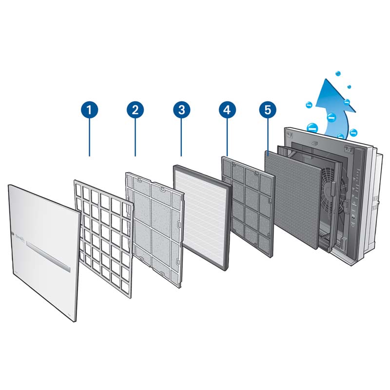 - Hepafilter gegen kleine Staubpartikel wie Pollen, Feinstaub, Milbenallergene