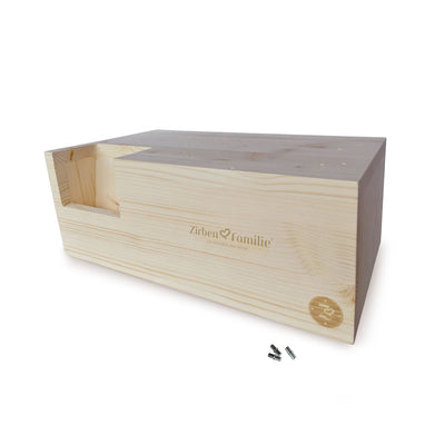 Die Wasserbar der ZirbenFamilie ist eine Zierde für jeden Haushalt. Sie bietet großen 5 oder 9 Liter Glungezer-Wasserkaraffen einen perfekten Platz und macht die Wasserentnahme zu einem kleinen Erlebnis. Platziere sie einfach in der Küche und befülle sie tagtäglich neu mit frischem Wasser, um sicherzustellen, dass deine Familie jeden Tag genug trinkt. Alternativ macht sich die Wasserbar auch sehr gut in kleinen Geschäften und ermöglicht den Kunden eine kurze Wasserpause. Wie auch immer du sie nutzen magst, mit der Wasserbar setzt du ein optisches Highlight und trägst einen Teil zur guten Gesundheit deiner Familie oder deiner Kunden bei. Die Wasserbar von ZirbenFamilie – Eine Bereicherung in deinem AlltagDie Wasserbar ist aus hochwertigem und natürlichem Zirbenholz hergestellt und wird in der Größe 40 cm x 15 cm x 25 cm geliefert. Sie ist auf die Nutzung mit Glungezer-Wasserkaraffen für 5 oder 9 Liter zugeschnitten. Je nach Familiengröße oder Kundenfrequenz im Laden, kann das Wasservolumen für einen ganzen Tag reichen. Falls sich der Wasservorrat doch mal schneller aufbraucht, fülle zwischendurch einfach auf. Warum Zirbenholz so wertvoll für dein Wohlbefinden istFast jeder weiß, wie wichtig Wasser für unsere Gesundheit ist. Nicht ohne Grund, sollen Menschen mehrere Liter täglich trinken. Umso wichtiger ist es, dass Wasser stets bereitsteht. Die Wasserbar aus Zirbenholz ist in Verbindung mit den Riesenwasserkaraffen also eine kleine Erinnerung an das Grundbedürfnis des Körpers: Wasser. Gleichzeitig verströmt das Zirbenholz, das bei der Herstellung der Wasserbar zum Einsatz kommt, einen einzigartigen Duft, der an Wald und Natur erinnert. Dieser Duft hat auf den Menschen eine beruhigende Wirkung, der im Alltag zu entspannen hilft. Produkte aus Zirbenholz sind somit genau das Richtige für dich, wenn dir dein Wohlbefinden wichtig ist und du lieber auf die Kräfte der Natur setzt als auf künstliche Produkte. | Regulärer Preis